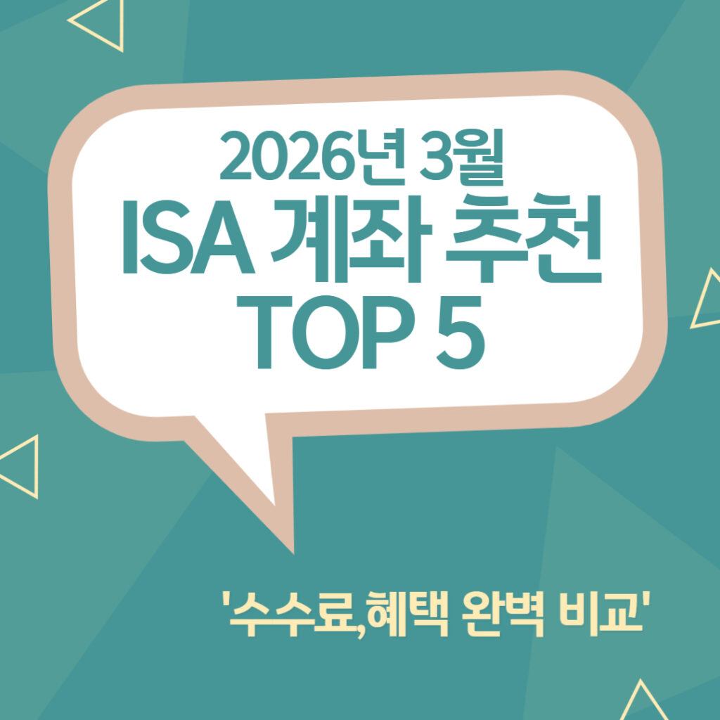 오늘은 ISA 계좌 개설을 고민하고 계신 분들을 위해 증권사 별 혜택 및 수수료, 특장점을 비교한 ‘2026년 3월 ISA 계좌 추천 TOP 5‘를 소개해 드리겠습니다.