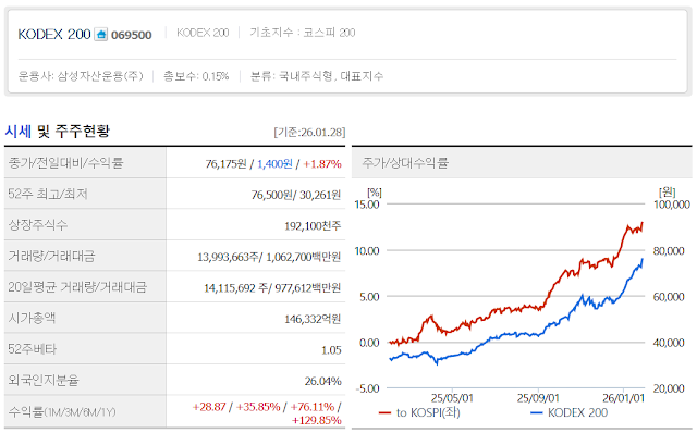(kodex200 ETF 예시 및 관련 정보: 출처 네이버페이 증권)