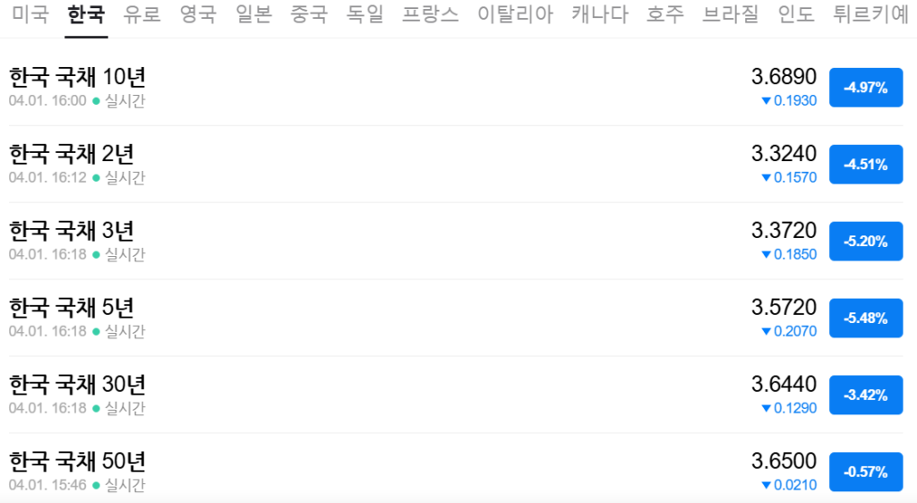 WGBI 편입이 시작된 오늘(4.1) 국고채 금리가 큰 폭으로 하락 마감했습니다!!